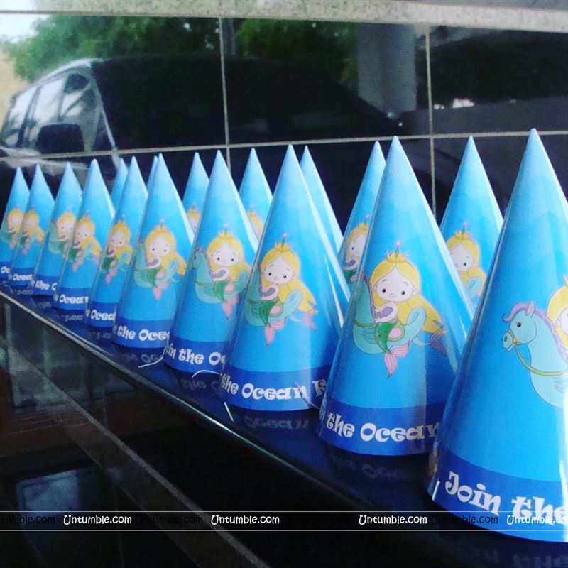 Mermaid party hats for your under the sea party. Little mermaid party caps for your child's underwater party to make the party extra special and memorable