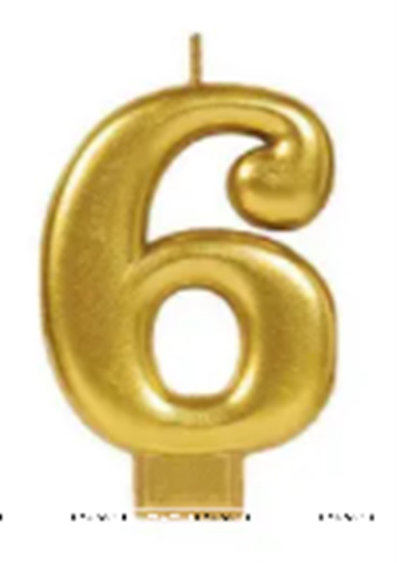 Gold Metallic Number 6 Candle
