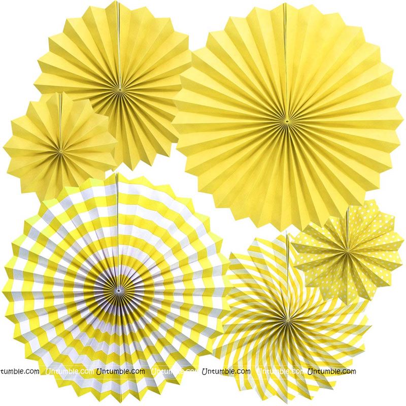 Yellow 1 party decoration Paper fan kit - 6pcs