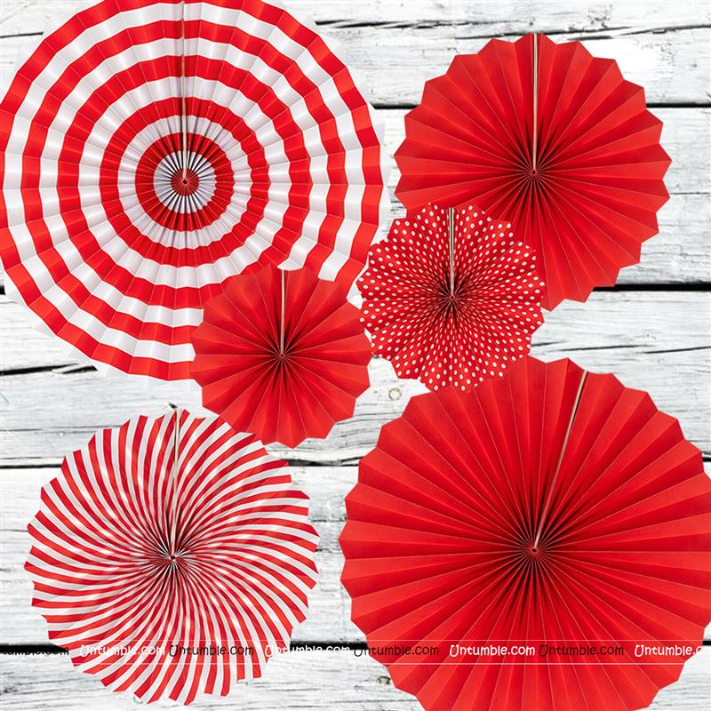 Set of 6 barnyard paper fans for a barnyard theme party. Includes 16" paper fans 2 pcs 12" paper fans 2 pcs 8" paper fans 2 pcs