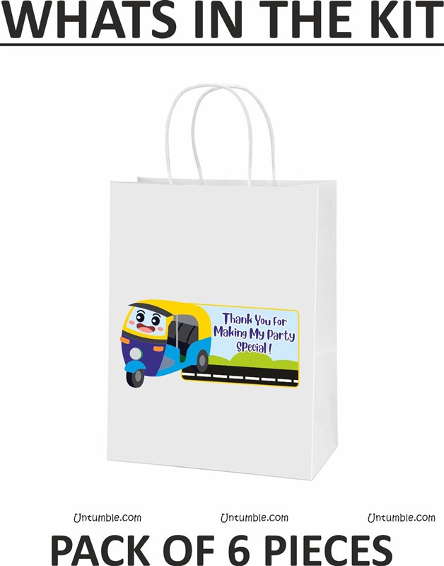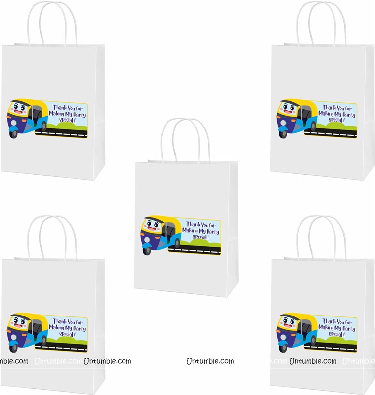 Customized return gift bag based on the theme. White bag with a theme based customized sticker on the front side.