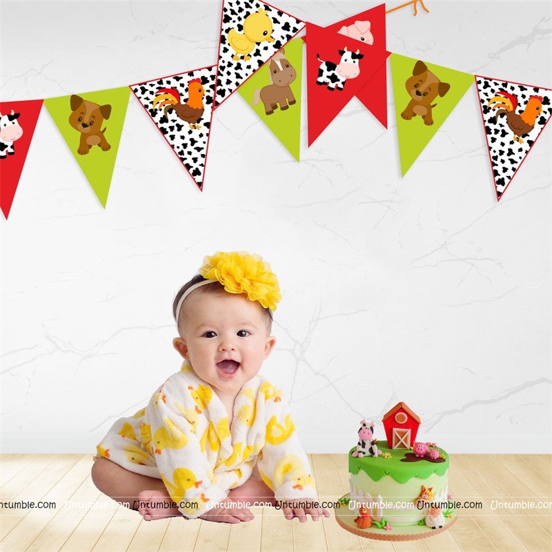 barnyard Theme Bunting , Topper and Balloons