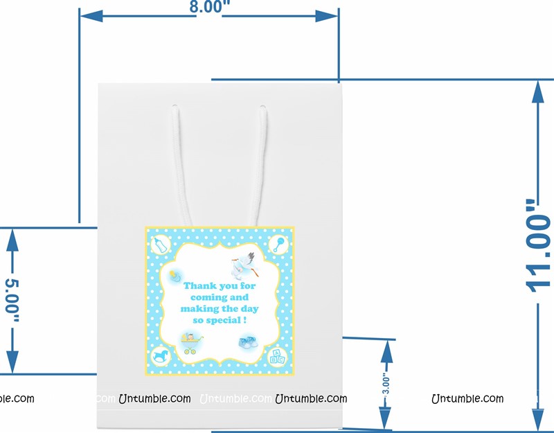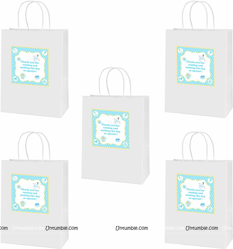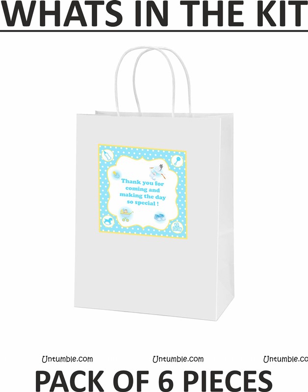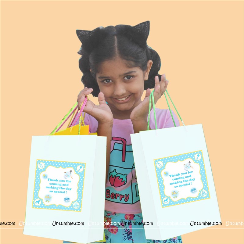 Customized return gift bag based on the theme. White bag with a theme based customized sticker on the front side.