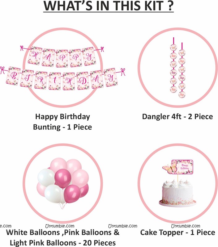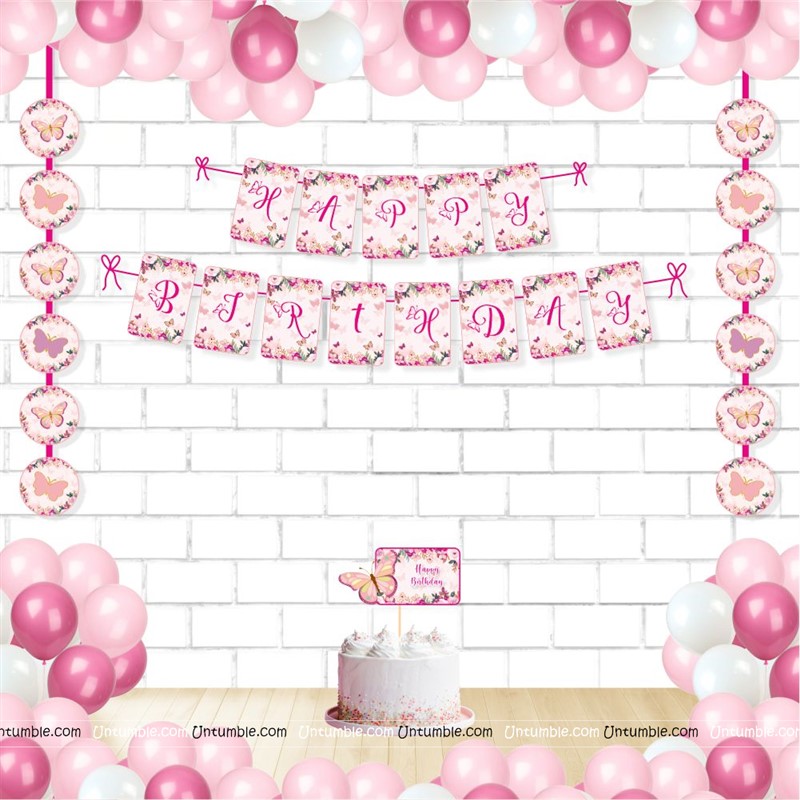 Butterfly theme Super saver birthday decoration kit (Pack of 58 pieces)