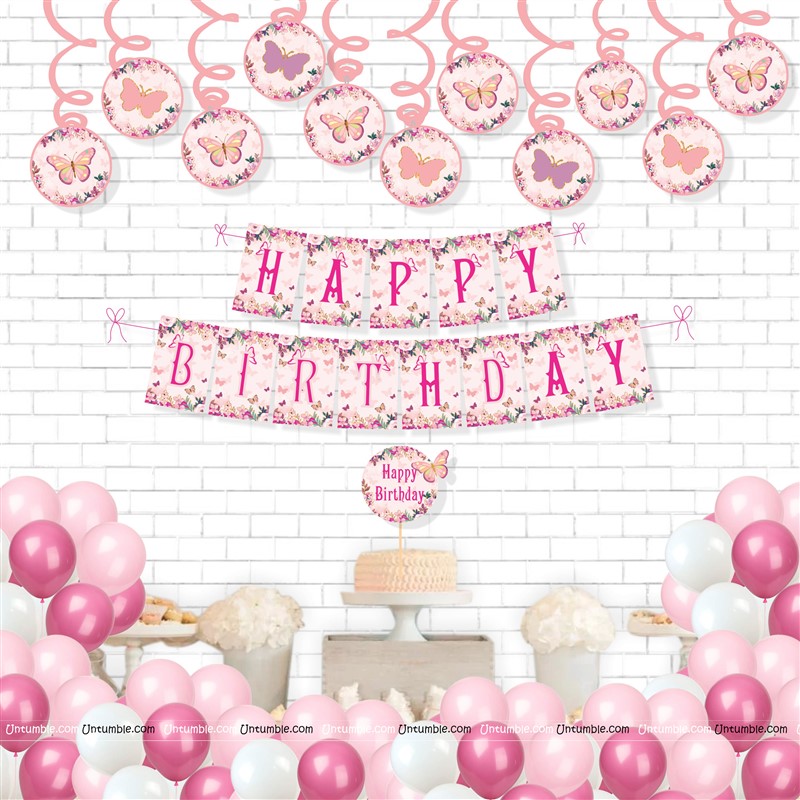 Butterfly theme Super saver birthday decoration kit (Pack of 58 pieces)