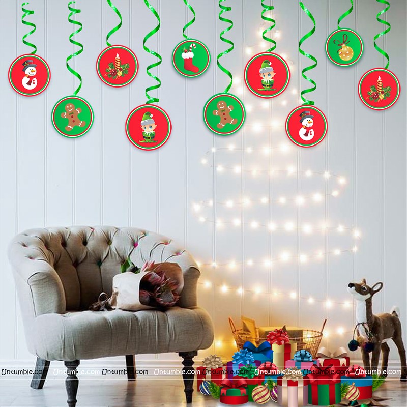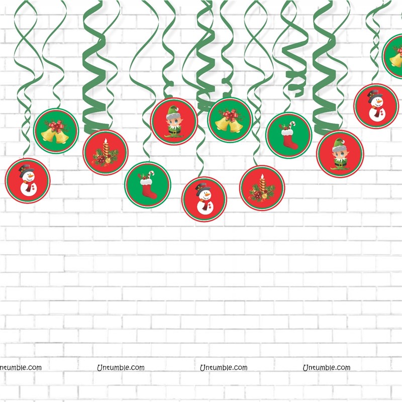 Festive swirls with a theme based element at the bottom. Great for the ceiling at a party venue. Can be tied or taped as required. Four feet in length.#swrils