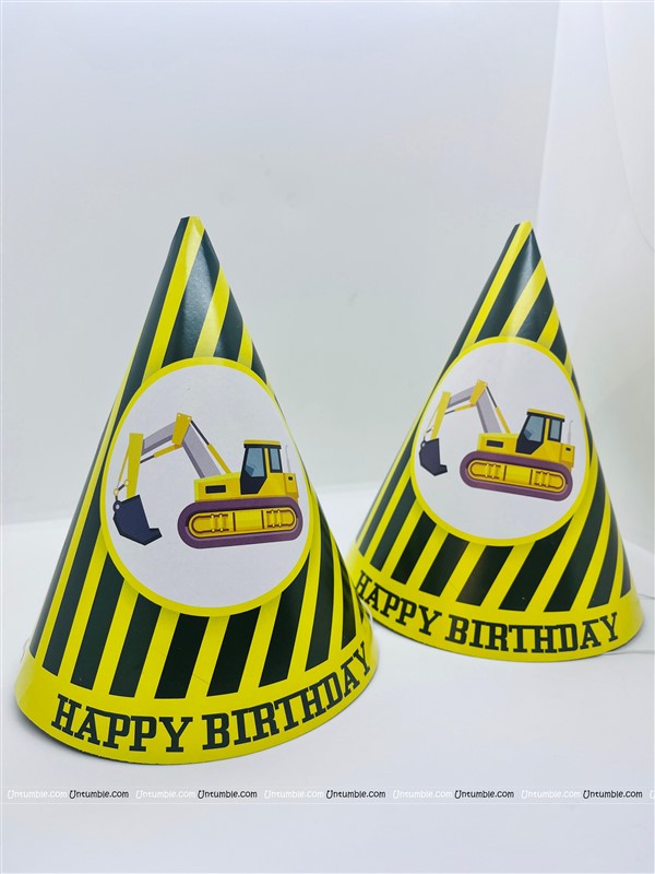A party is incomplete without hats. These fully customized hats are printed to the theme and can incorporate a name and a snippet of text.
