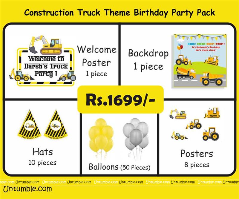 Construction theme Super saver birthday decoration kit (pack of 58 pcs)