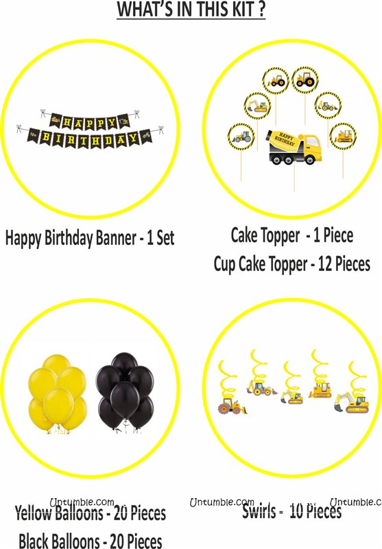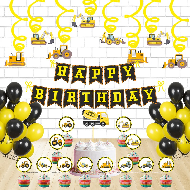 Construction theme Super saver birthday decoration kit (pack of 58 pcs)