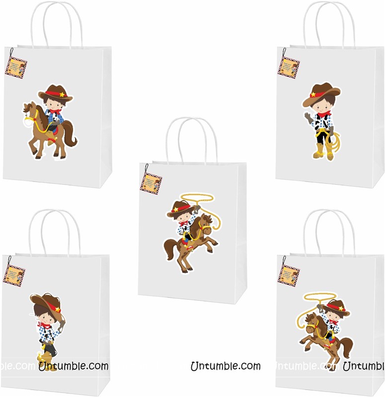 Cowboy Birthday theme Stickered gift bags