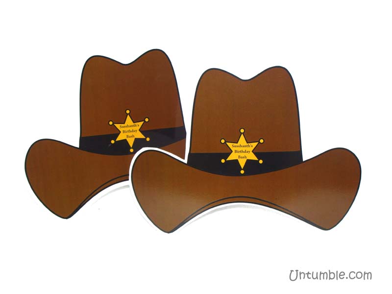 A party is incomplete without hats. These fully customized hats are printed to the theme and can incorporate a name and a snippet of text.