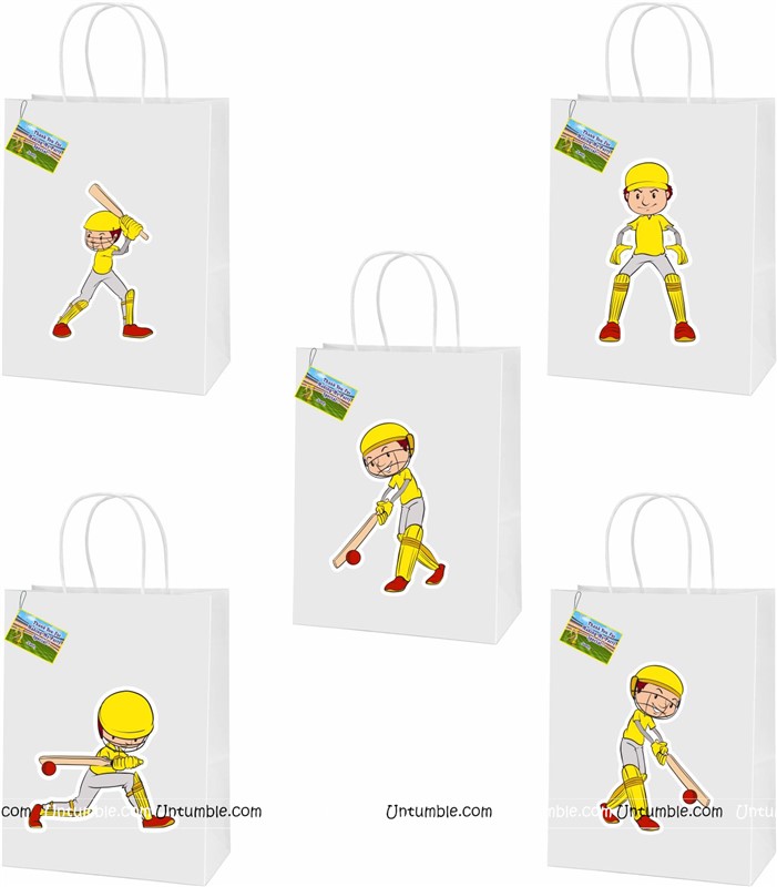 Customized return gift bag based on the theme. White bag with a theme based customized sticker on the front side.