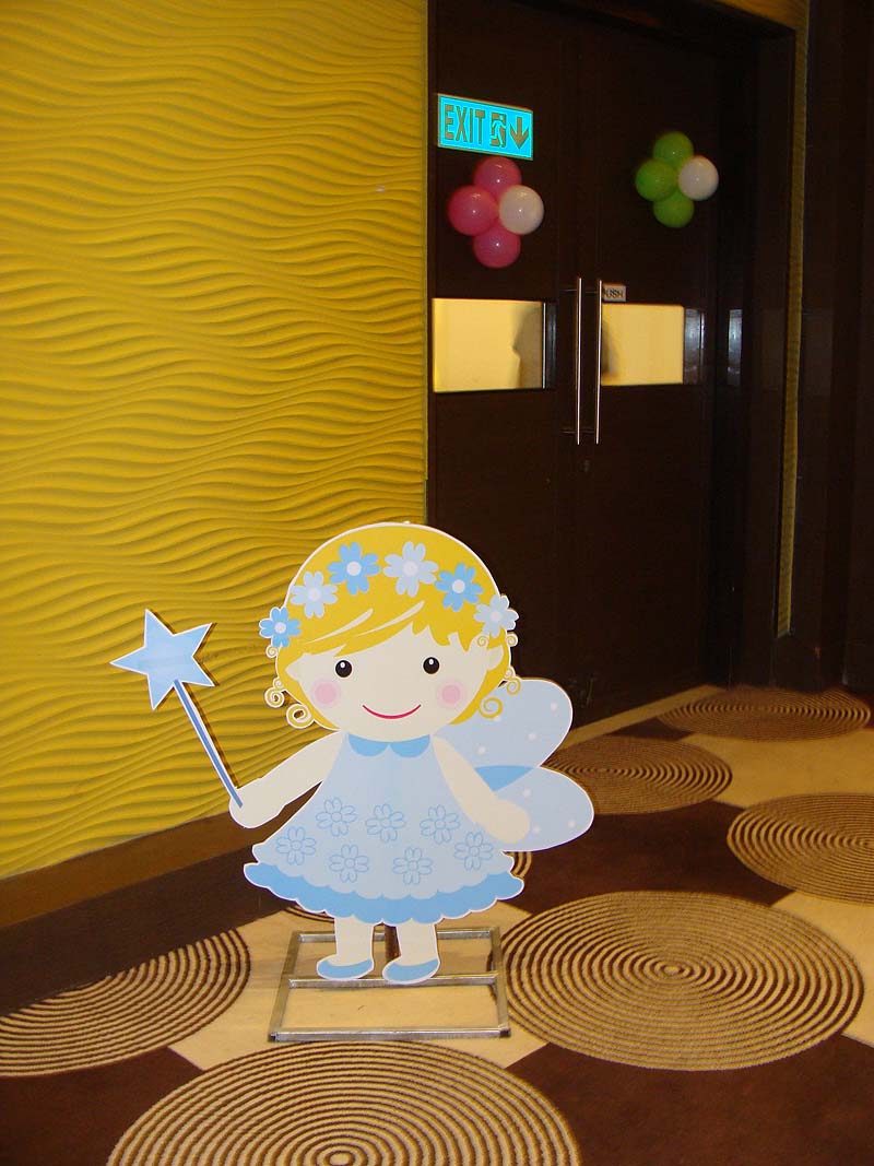 Hardboard Shaped Cutouts :These are made of 4 mm thick foam board and can stand with support. Stands and balloons are NOT included.