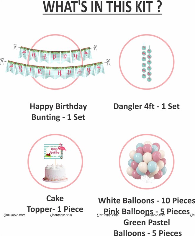 Flamingo theme Super saver birthday decoration kit (Pack of 58 pieces)