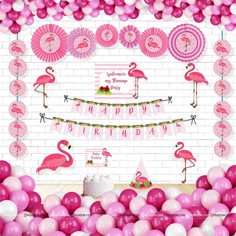 Flamingo theme Super saver birthday decoration kit (Pack of 58 pieces)