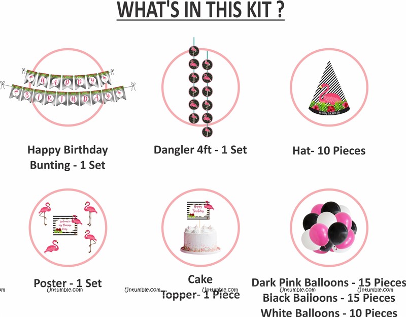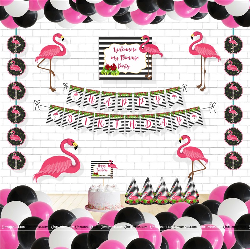 Flamingo theme Super saver birthday decoration kit (Pack of 58 pieces)