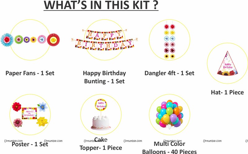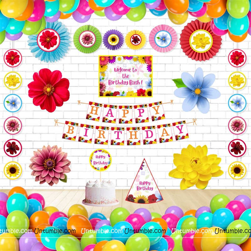 Flower Theme Birthday Decoration Kit, Pack of 24
