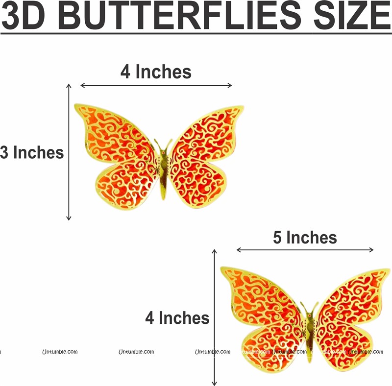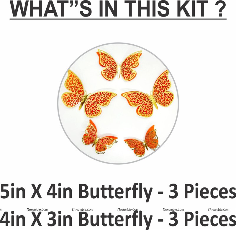 Gold and Orange Butterfly Party Decor Stickers- 1 Set