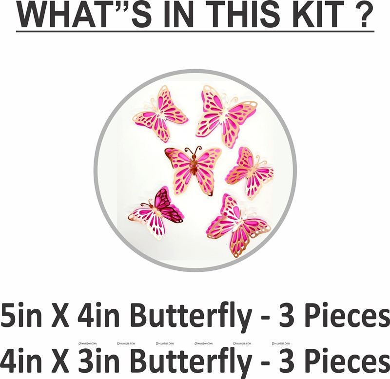 Dark Pink Butterfly Party Decor Stickers- 1 Set