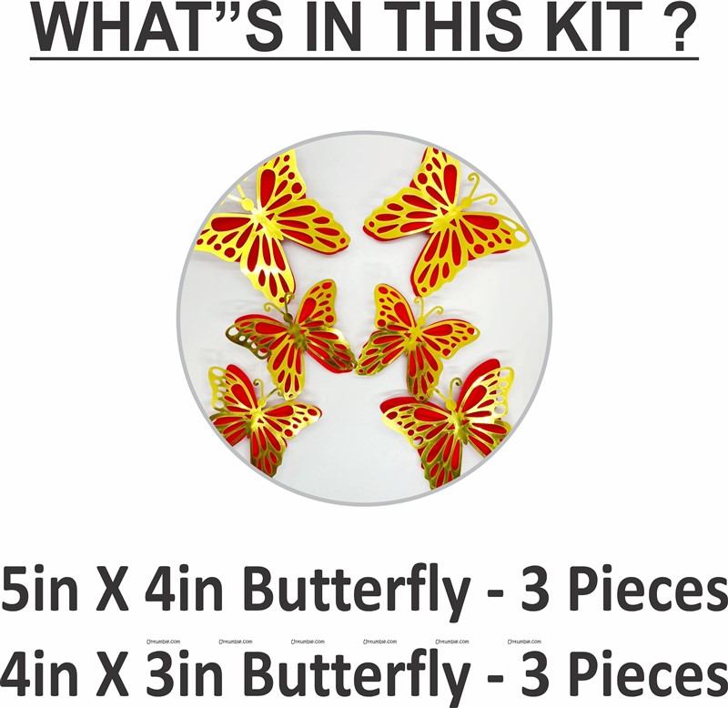 Gold and Red Butterfly Party Decor Stickers- 1 Set