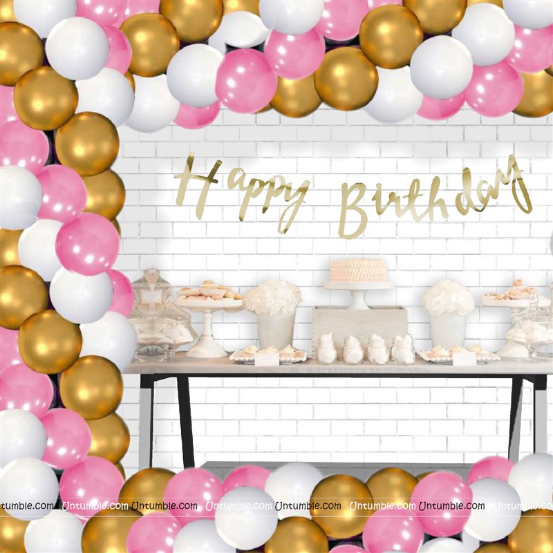 Cursive Banner Pink and Gold Theme Birthday Decoration Kit (Pack of 52 )