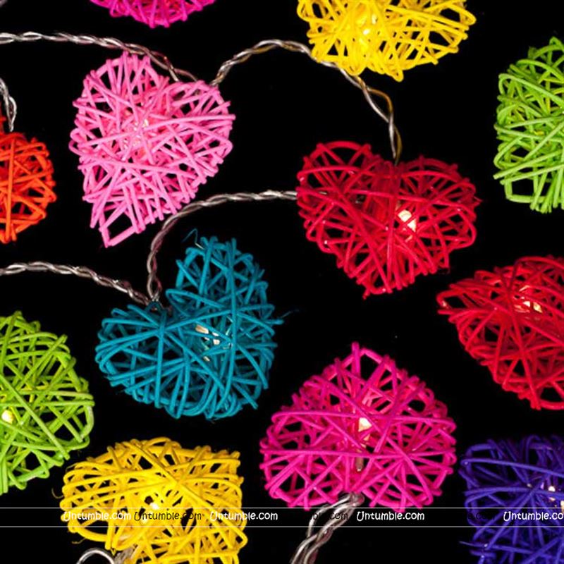 20 Multicolor heart lights strung on a wire for your surprise birthday/ anniversary celebration, Or for any festive decor ! Plug it in and switch on to enjoy a cosy ambience !