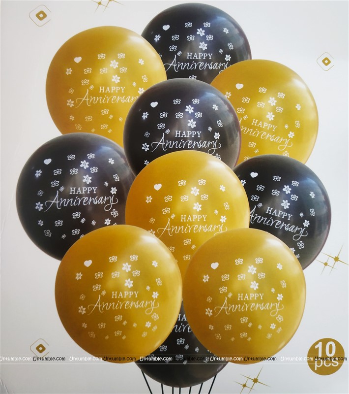 Happy Anniversary Latex Balloons Gold & Black Set of 10