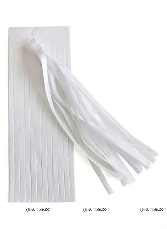Thin strips of paper / foil cut to make bunches which can be strunga cross tables, walls or doorways