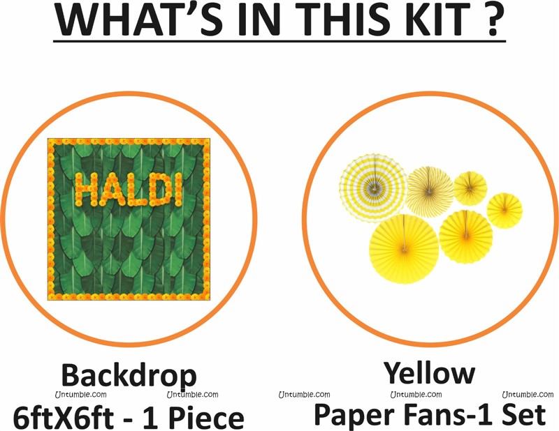 Haldi Foil Kit with Backdrop and Green Paper Fans