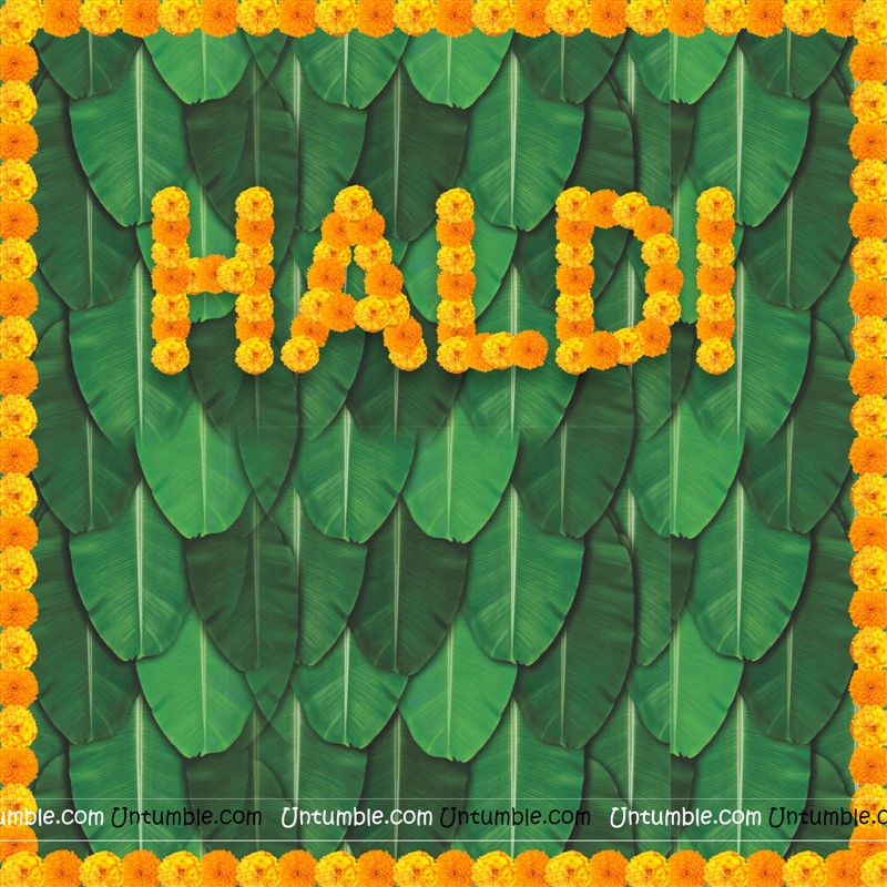 Haldi function Banana Leaf Backdrop with Yellow Paper Fans