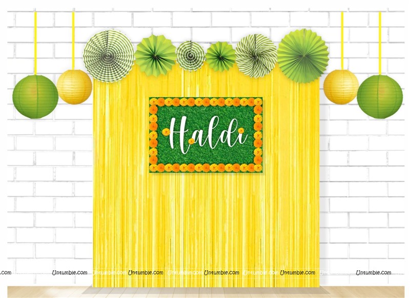 Haldi Foil Kit with Backdrop and Green Paper Fans