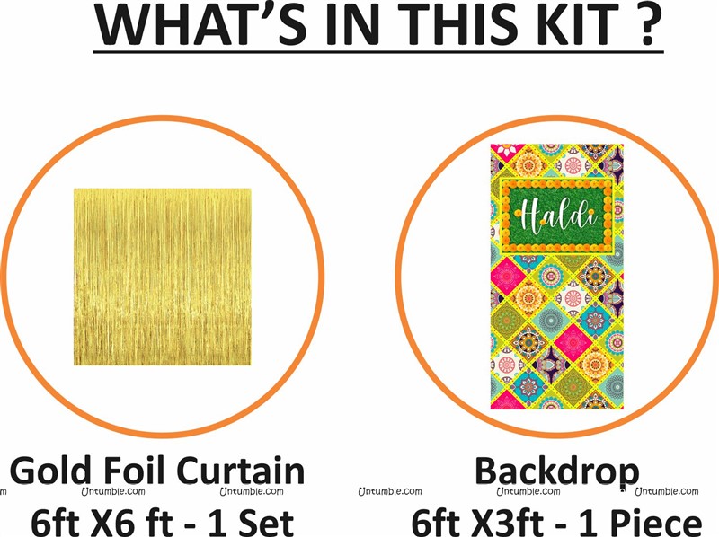 Haldi Foil Kit with Backdrop and Green Paper Fans