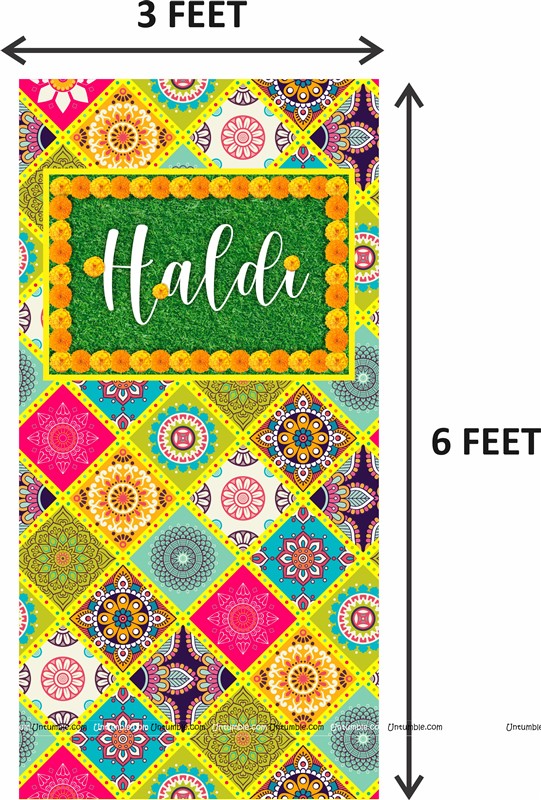 Haldi Ceremony festive Backdrop Banner with a Banana Leaf print on cloth for a stage setup
