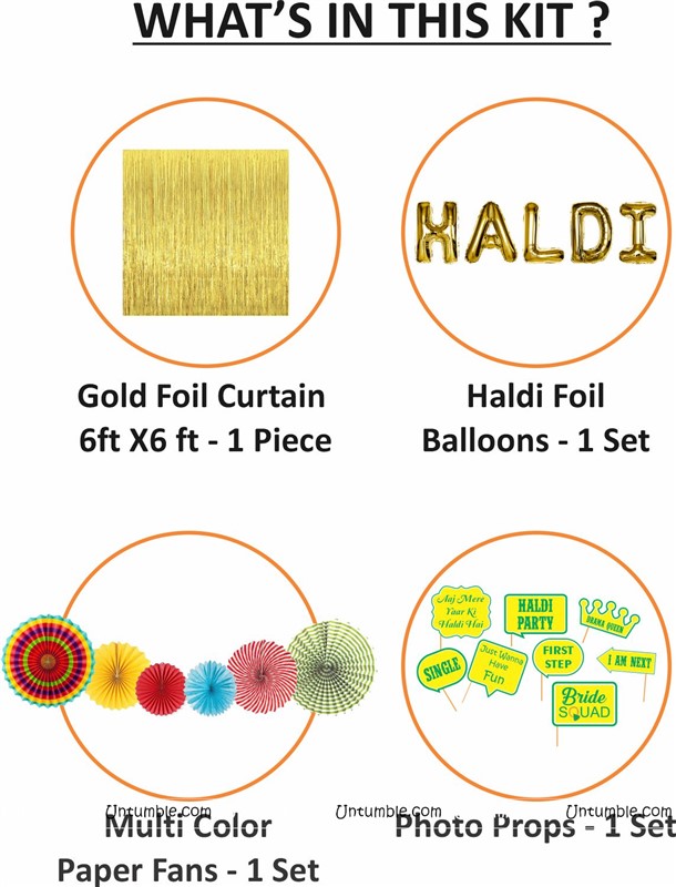 Haldi Foil Balloon and Paper Fan Curtain Kit