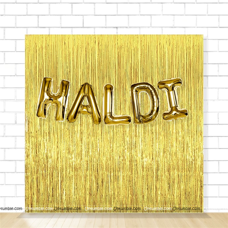 Haldi Foil Balloon and Paper Fan Curtain Kit with Photo Props
