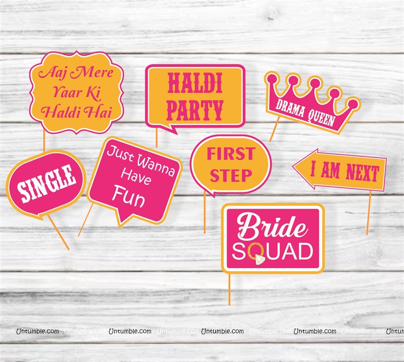 Haldi Foil Balloon and Paper Fan Curtain Kit with Photo Props