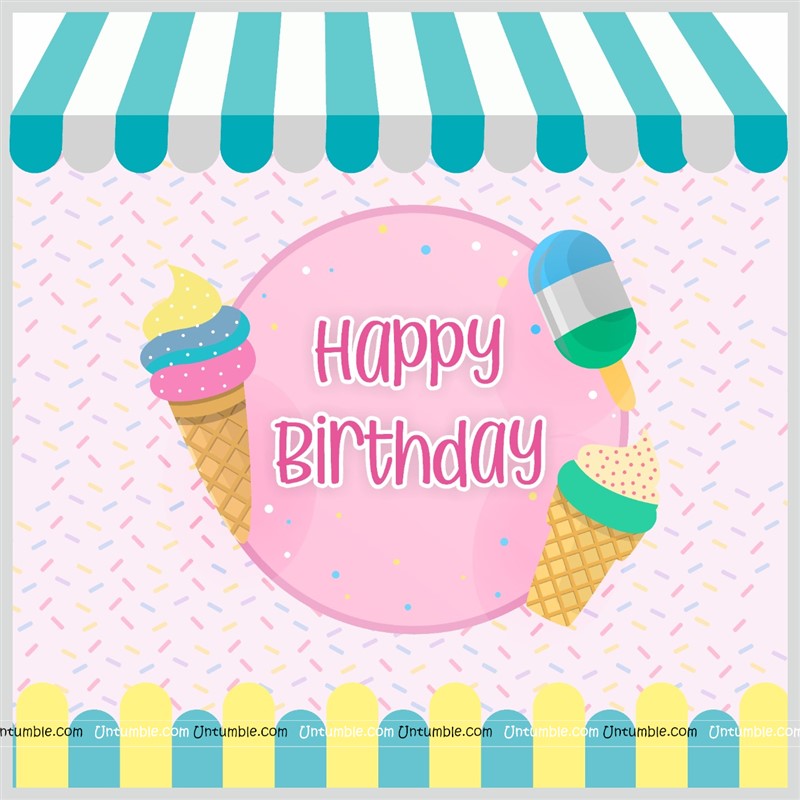Ice Cream Theme Happy Birthday Backdrop 4 feet x 4 feet, Pack of 1