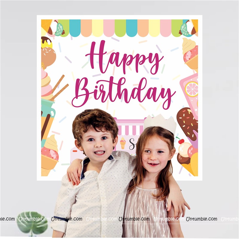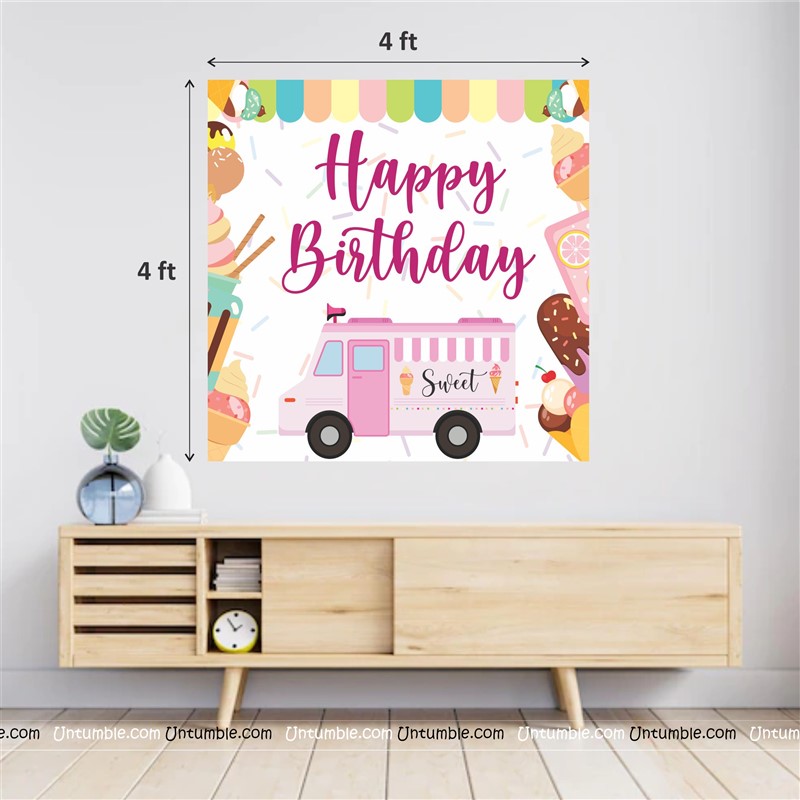 Ice Cream Theme Backdrop 4 feet x 4 feet, Pack of 1
