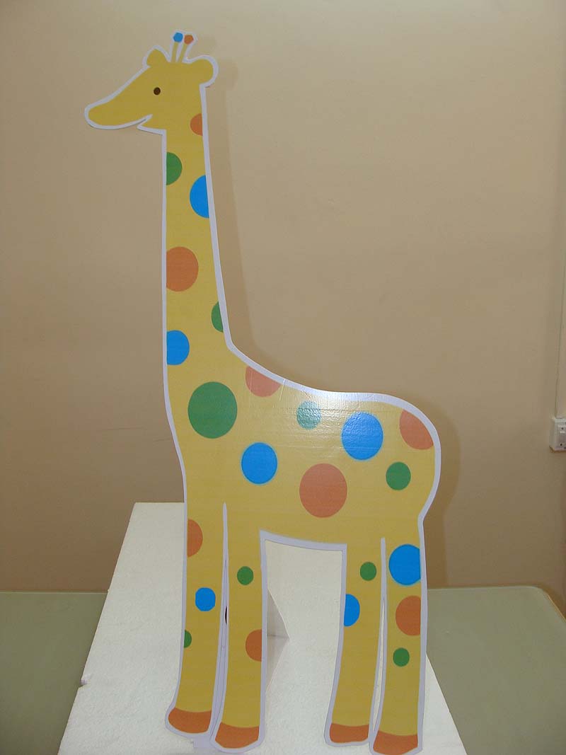 Hardboard Shaped Cutouts :These are made of 4 mm thick foam board and can stand with support. Stands and balloons are NOT included.