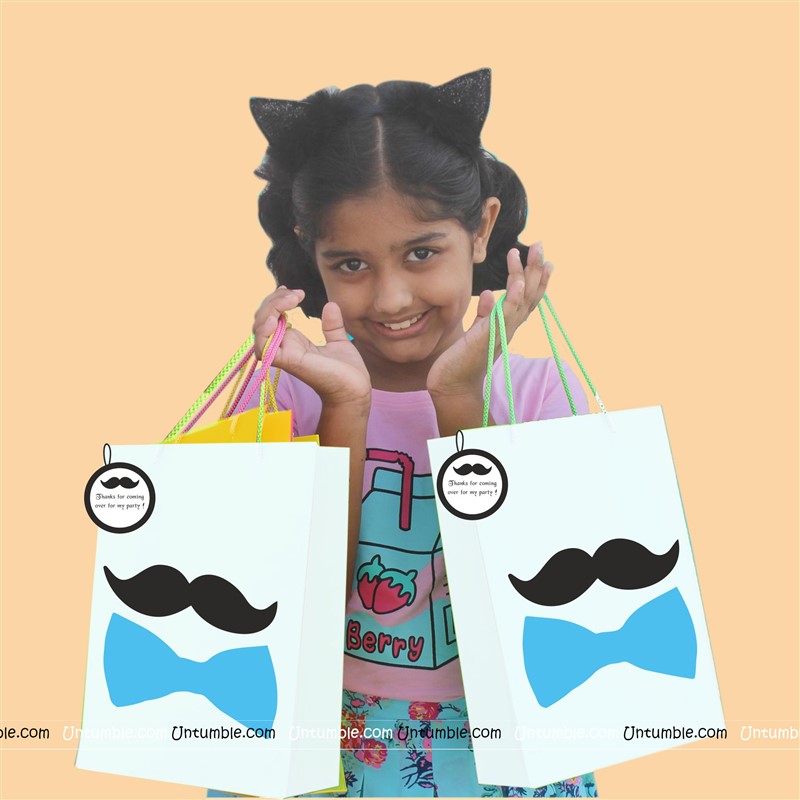 Customized return gift bag based on the theme. White bag with a theme based customized sticker on the front side.
