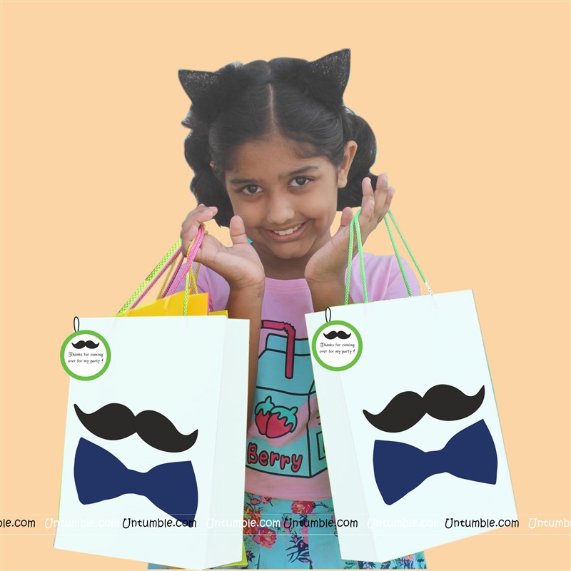 Little Man Birthday | Boss Baby | Mustache theme Stickered gift bags
