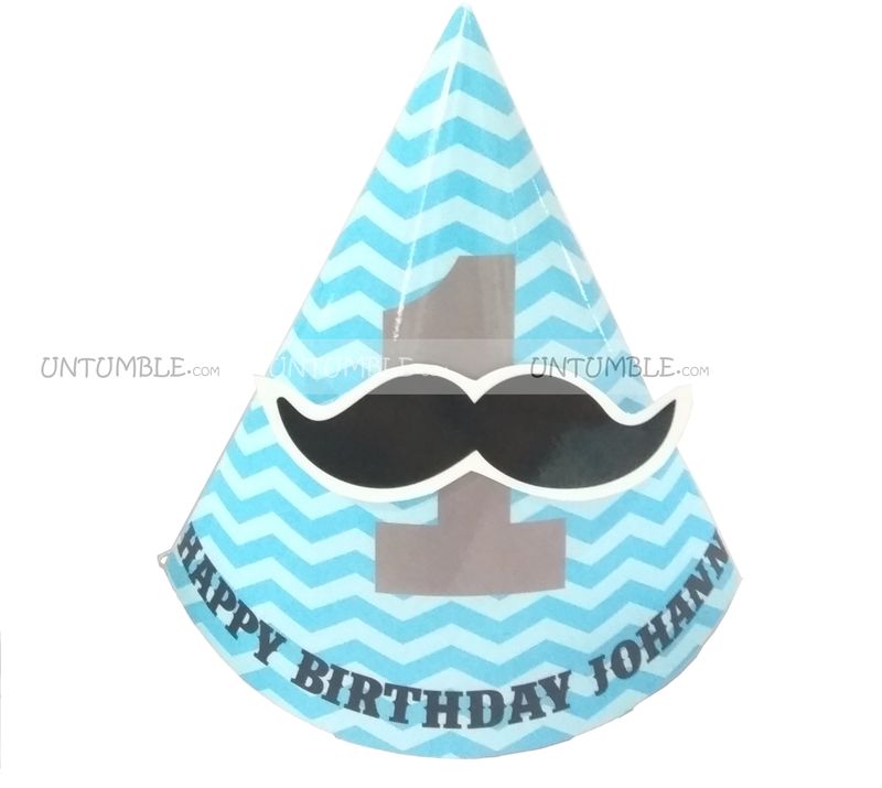 A party is incomplete without hats. These fully customized hats are printed to the theme and can incorporate a name and a snippet of text.