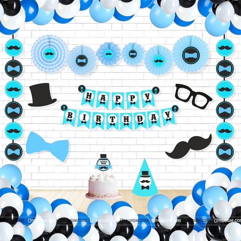 Little Man Super saver birthday decoration kit (Pack of 58 pieces)