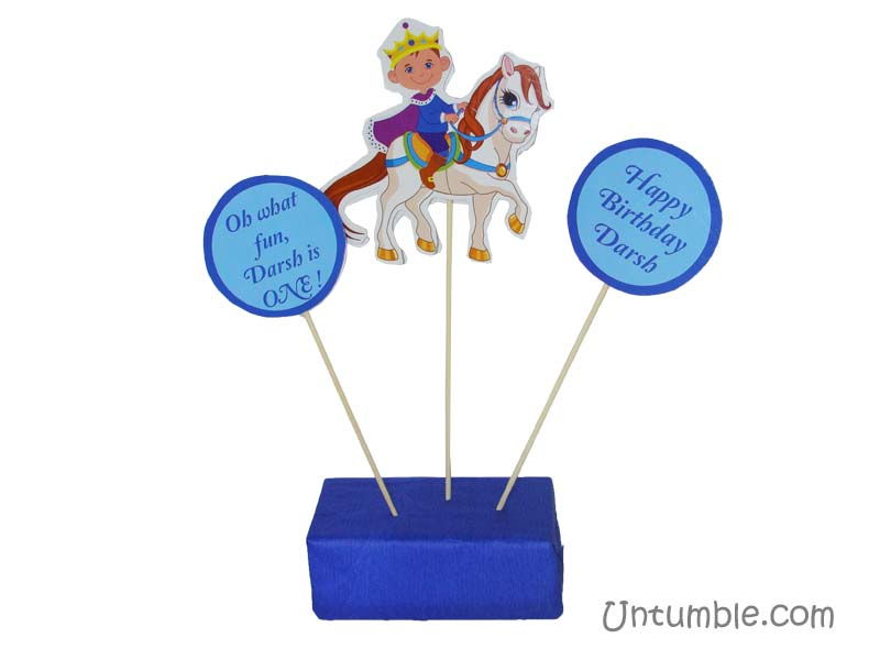 Several different options to pick from - 1. Skewers with toppers poked on a thermocol base or cup cakes2. Sided artboard centerpiece