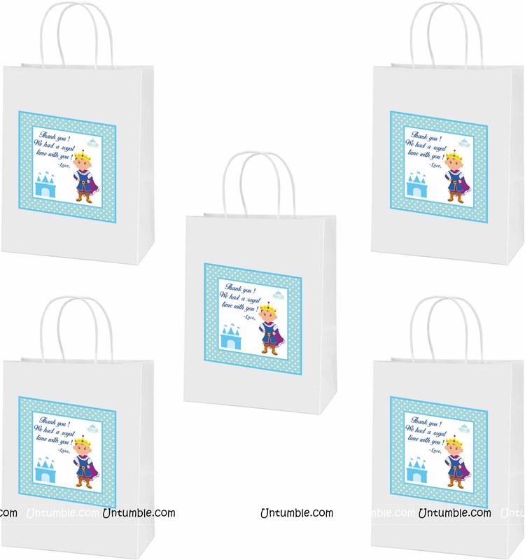 Customized return gift bag based on the theme. White bag with a theme based customized sticker on the front side.