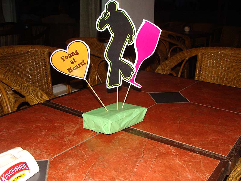 Several different options to pick from - 1. Skewers with toppers poked on a thermocol base or cup cakes2. Sided artboard centerpiece