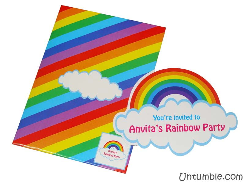 Rainbow birthday invitation with custom envelope