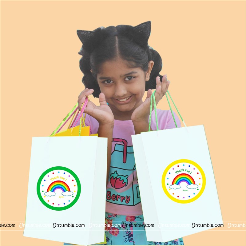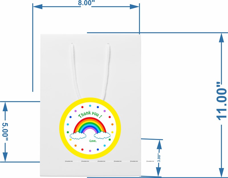Customized return gift bag based on the theme. White bag with a theme based customized sticker on the front side.