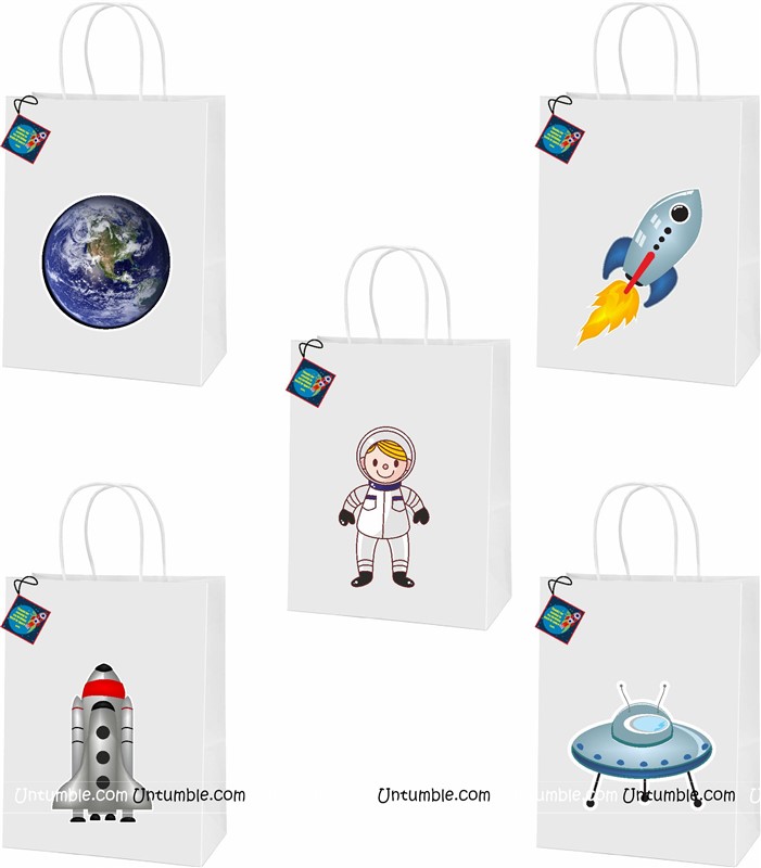 Customized return gift bag based on the theme. White bag with a theme based customized sticker on the front side.