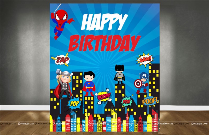Super Hero Theme Green Background Backdrop 4 feet x 4 feet, Pack of 1